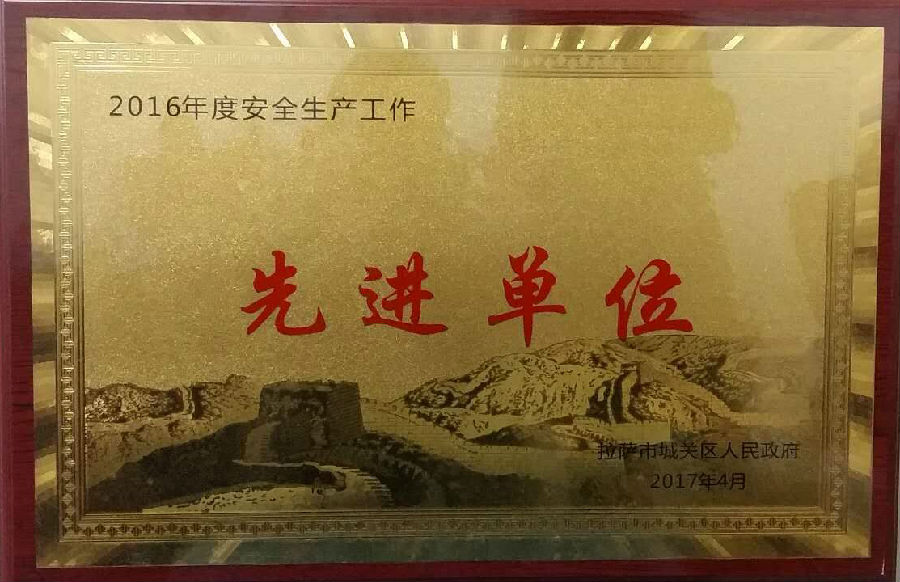 2017年4月14日,公司應邀參加拉薩市城關(guān)區(qū)第二季度安全生產(chǎn)工作部署暨2016年度先進單位和先進個人表彰會議,公司安全部副經(jīng)理劉瑋軍代表公司參會,在會上公司被拉薩市城關(guān)區(qū)人民政府評為“2016年度安全生產(chǎn)工作先進單位”。