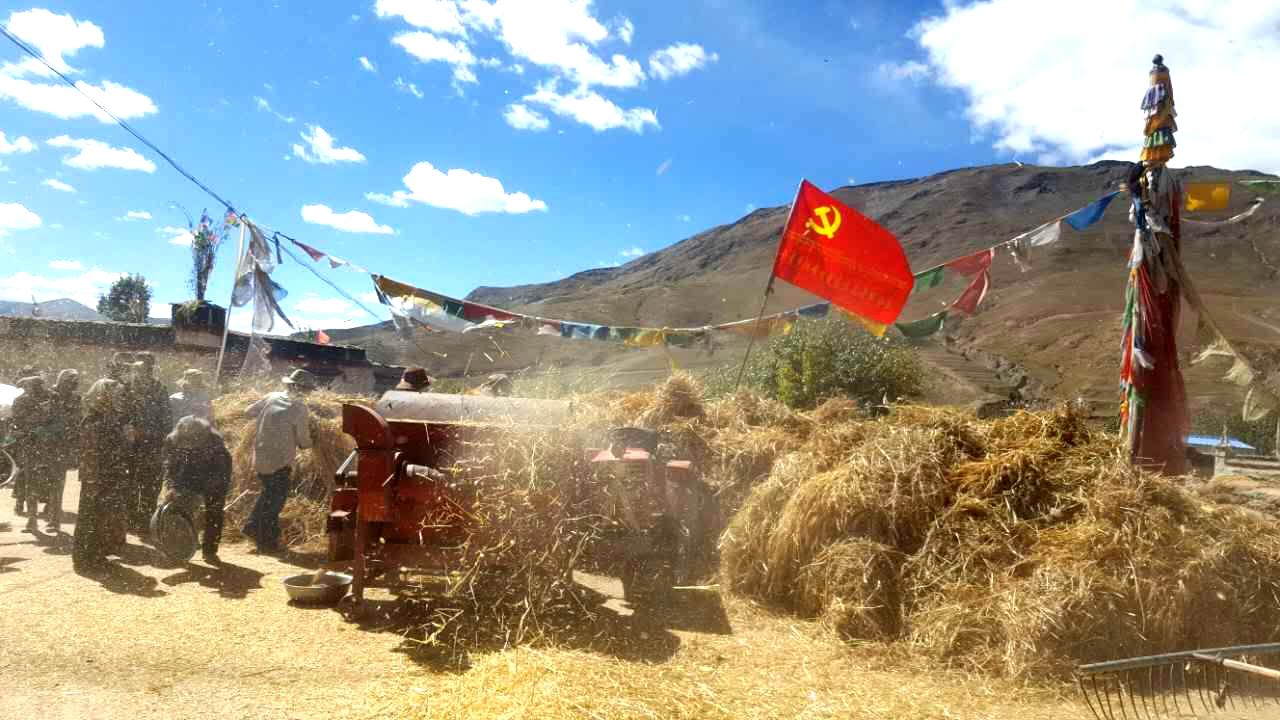 工作部署后,公司駐朗嘎村工作隊(duì)隊(duì)員桑珠、次旦、嘠瑪?shù)韧緭湎律碜?、聚焦村頭、深入田間, 與農(nóng)牧民群眾同吃、同勞動(dòng)、同學(xué)習(xí),充分發(fā)揮駐村工作隊(duì)作用,積極協(xié)助并參與村內(nèi)組建黨員志愿者服務(wù)隊(duì),熱心幫助農(nóng)牧民群眾做好秋收工作,進(jìn)一步融洽了駐村工作隊(duì)與農(nóng)牧民群眾間的魚水關(guān)系,秋收現(xiàn)場(chǎng)呈現(xiàn)一片火熱的景象。