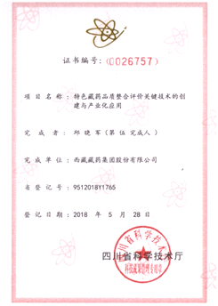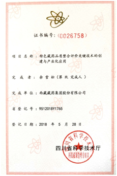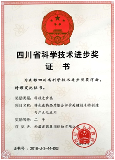 根據(jù)《四川省科學(xué)技術(shù)獎(jiǎng)勵(lì)辦法》,經(jīng)省科學(xué)技術(shù)獎(jiǎng)勵(lì)評(píng)審委員會(huì)評(píng)審、省科學(xué)技術(shù)獎(jiǎng)勵(lì)委員會(huì)審定,我公司聯(lián)合成都中醫(yī)藥大學(xué)申報(bào)的“特色藏藥品質(zhì)整合評(píng)價(jià)關(guān)鍵技術(shù)的創(chuàng)建與產(chǎn)業(yè)化應(yīng)用”項(xiàng)目成果被省政府授予“四川省科學(xué)技術(shù)進(jìn)步獎(jiǎng)二等獎(jiǎng)”。其中公司副總經(jīng)理邱曉軍博士被授予“四川省科學(xué)技術(shù)進(jìn)步獎(jiǎng)”獲得者二等獎(jiǎng)證書和“四川科學(xué)技術(shù)成果完成者證書”;公司研發(fā)中心經(jīng)理余雪松同志獲得“四川科學(xué)技術(shù)成果完成者證書”,以表彰他們對(duì)獲獎(jiǎng)項(xiàng)目成果做出的突出貢獻(xiàn)。