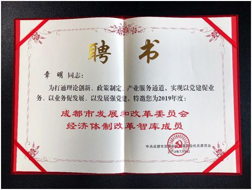 標題:公司總經理章明入選“成都發(fā)改委經濟體制改革智庫成員”