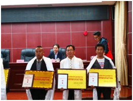 索朗次旺副總經(jīng)理領(lǐng)取證書及牌匾 全國民族特需商品定點生產(chǎn)企業(yè)證書